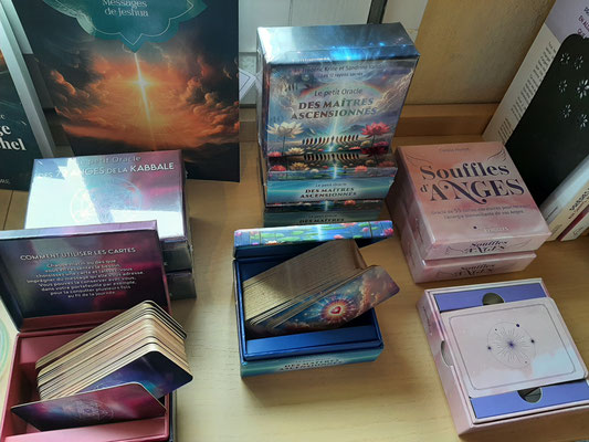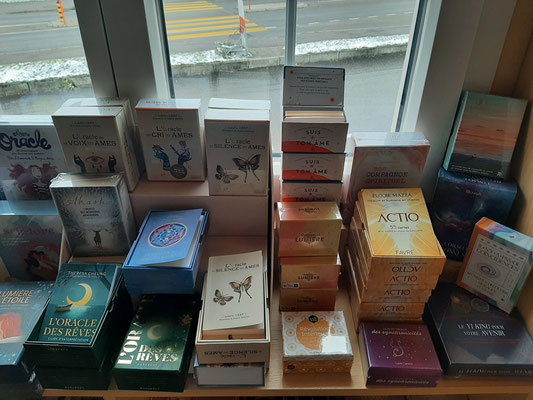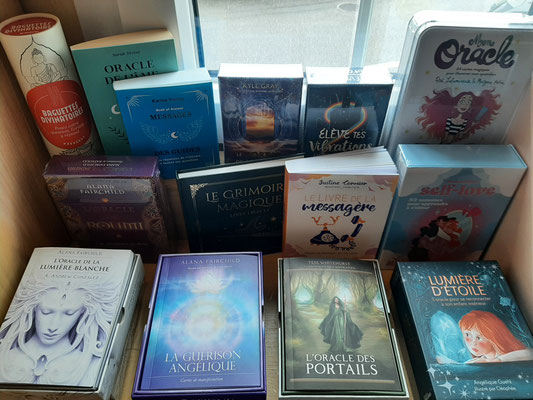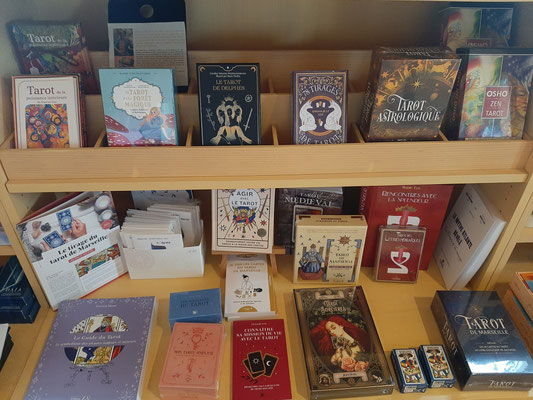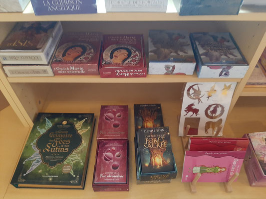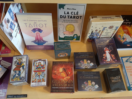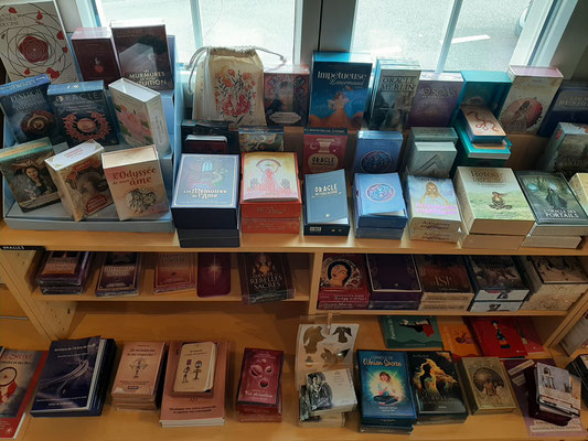 A découvrir à la librairie, un grand choix de cartes oracles et de tarots...de quoi vous proposer des pistes d'inspiration dans votre vie quotidienne.